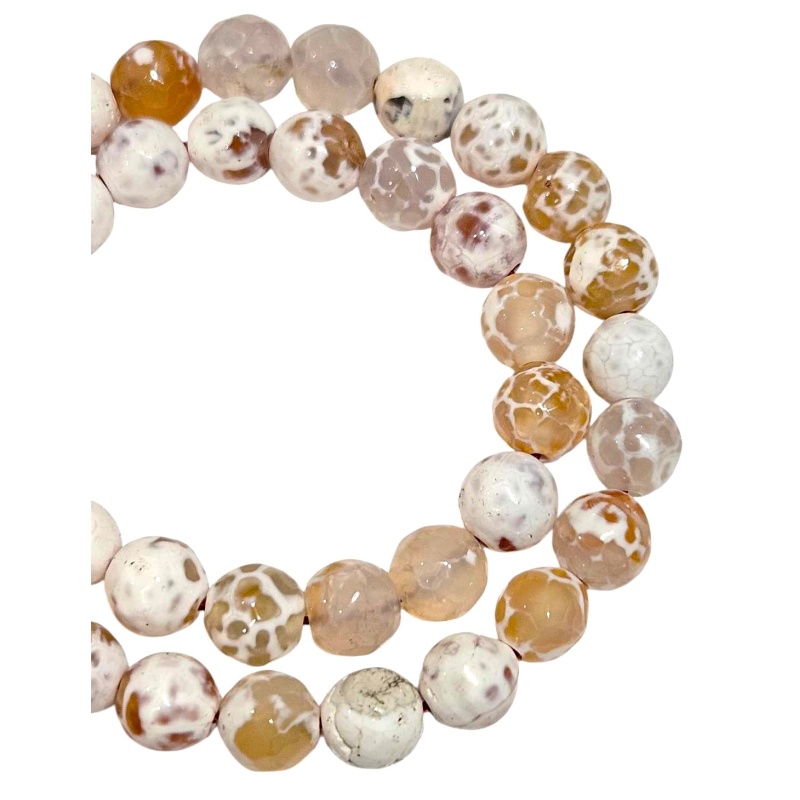 Ahhaat, valge-kollane/toonitud, tahuline, Fire Crackle Agate, 10tk.