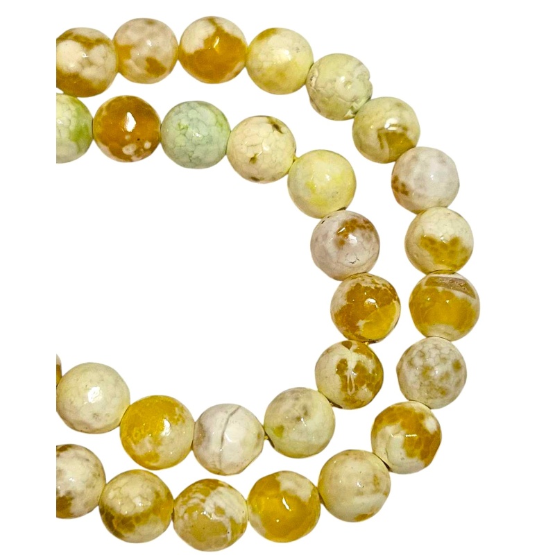 Ahhaat, valge-kollane/toonitud, tahuline, Fire Crackle Agate, 10tk.