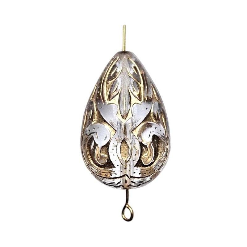 Tilgakujuline akrüülpärl (17x7mm) + tahuline klaashelmes (4mm).