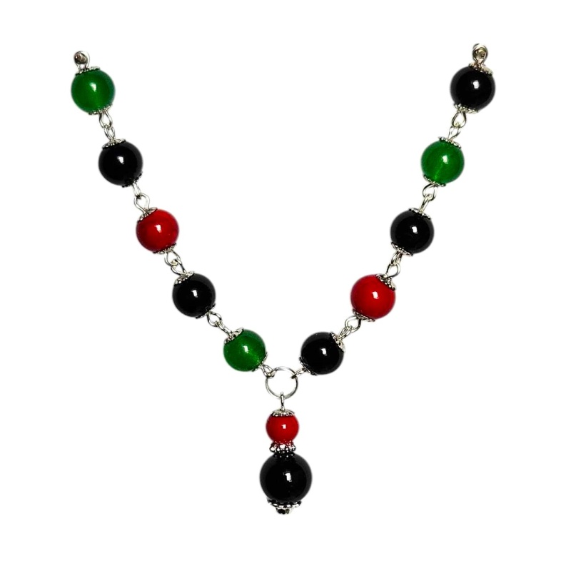 Oonüks/nefriit/fossiil. Kaelakee keskmine osa. Metallosad: hõbedast värvi.