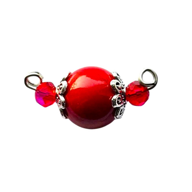 Fossiil punane/toonitud, 10mm + tahulised klaashelmed, 4mm.