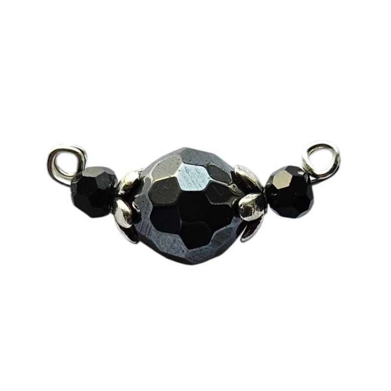 Hematiit, tahuline, 10mm + tahulised klaashelmed, 4mm.