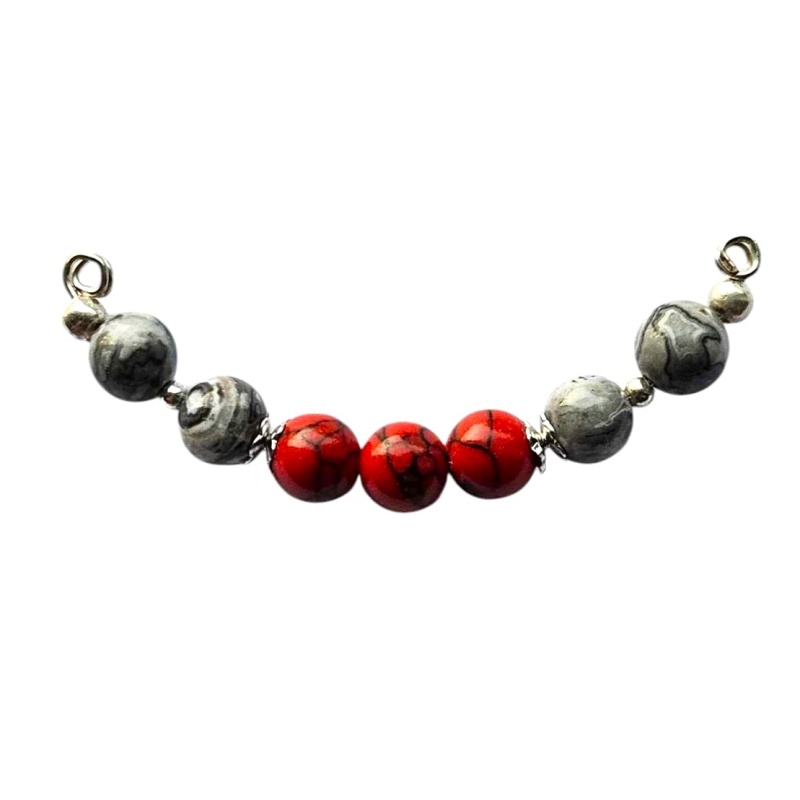 Hall jaspis, 6mm; pressitud türkiis, punane/toonitud, 6mm.