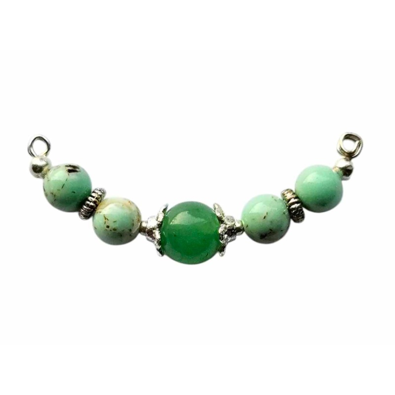 Käevõru keskne element. Roheline aventuriin/pärlikojad. Metallosad: hõbedast värvi.