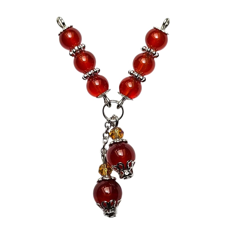 Karneool. Kaelakee keskmine osa. Metallosad: hõbedast värvi.