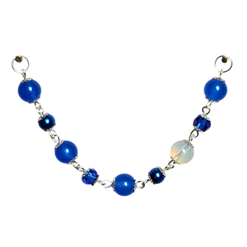 Nefriit toonitud, 8mm; opaliit, 8mm; klaaspärlid sinised, 6mm; klaasrondellid sinised, 6x4mm.