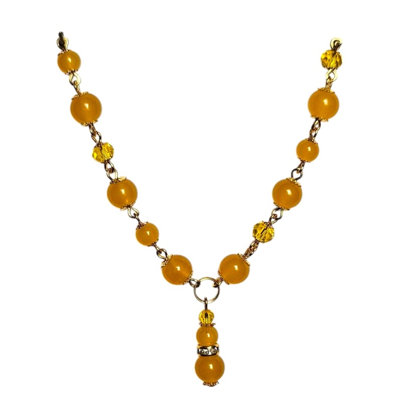 Nefriit toonitud, 6 ja 8mm; klaasrondellid kollased, 6x4mm.