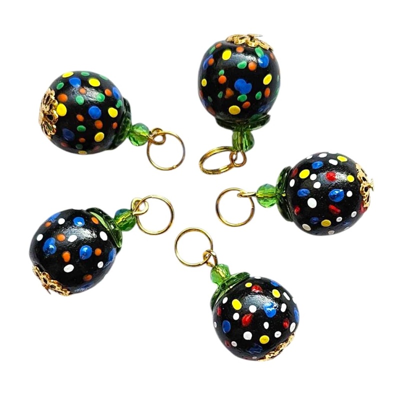 Käsitsi maalitud puidust helmed (14x13mm) + akrüülist roheline pärlikapsel.