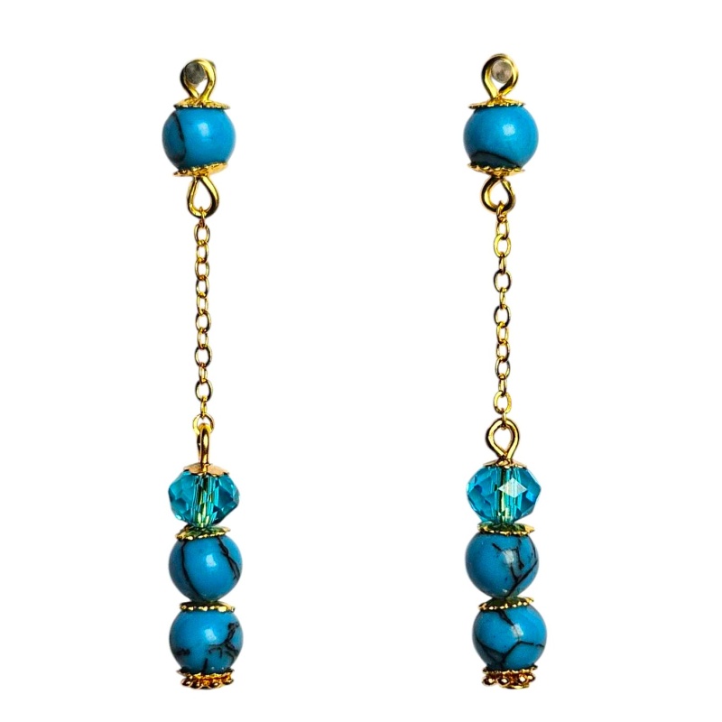 Türkiis (sünteetiline). Metallosad: kuldset värvi.